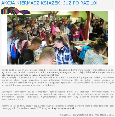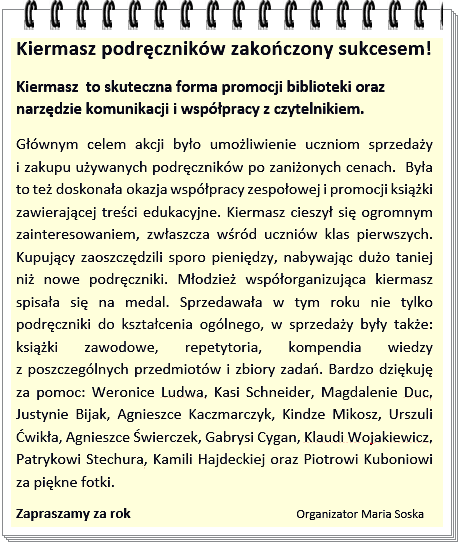 Bardzo serdecznie dziękujemy Pani Krystynie Więcek za wzbogacenie naszej
