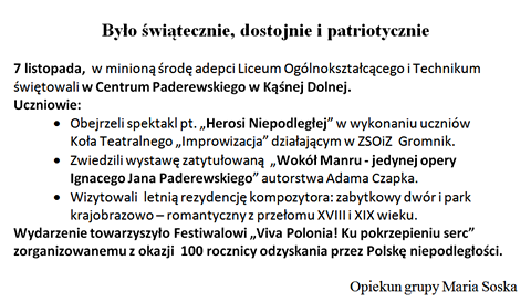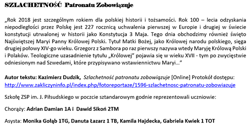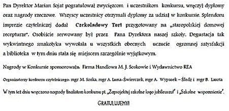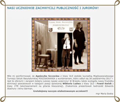 pełna relacja z sukcesu Agnieszki na stronie szkoły: