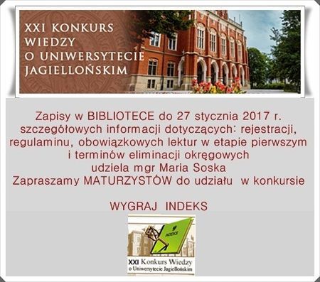 wzięła udział w "Konkursie Wiedzy o Uniwersytecie Jagiellońskim".