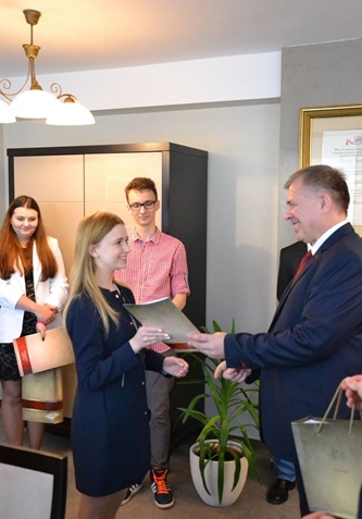 wręczył uczniom dyplomy uznania i upominki, prosząc jednocześnie