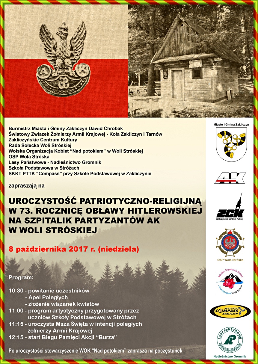 Zapraszamy nauczycieli i uczniów z rodzicami, na uroczystość patriotyczno - religijną w Woli Stróskiej. |