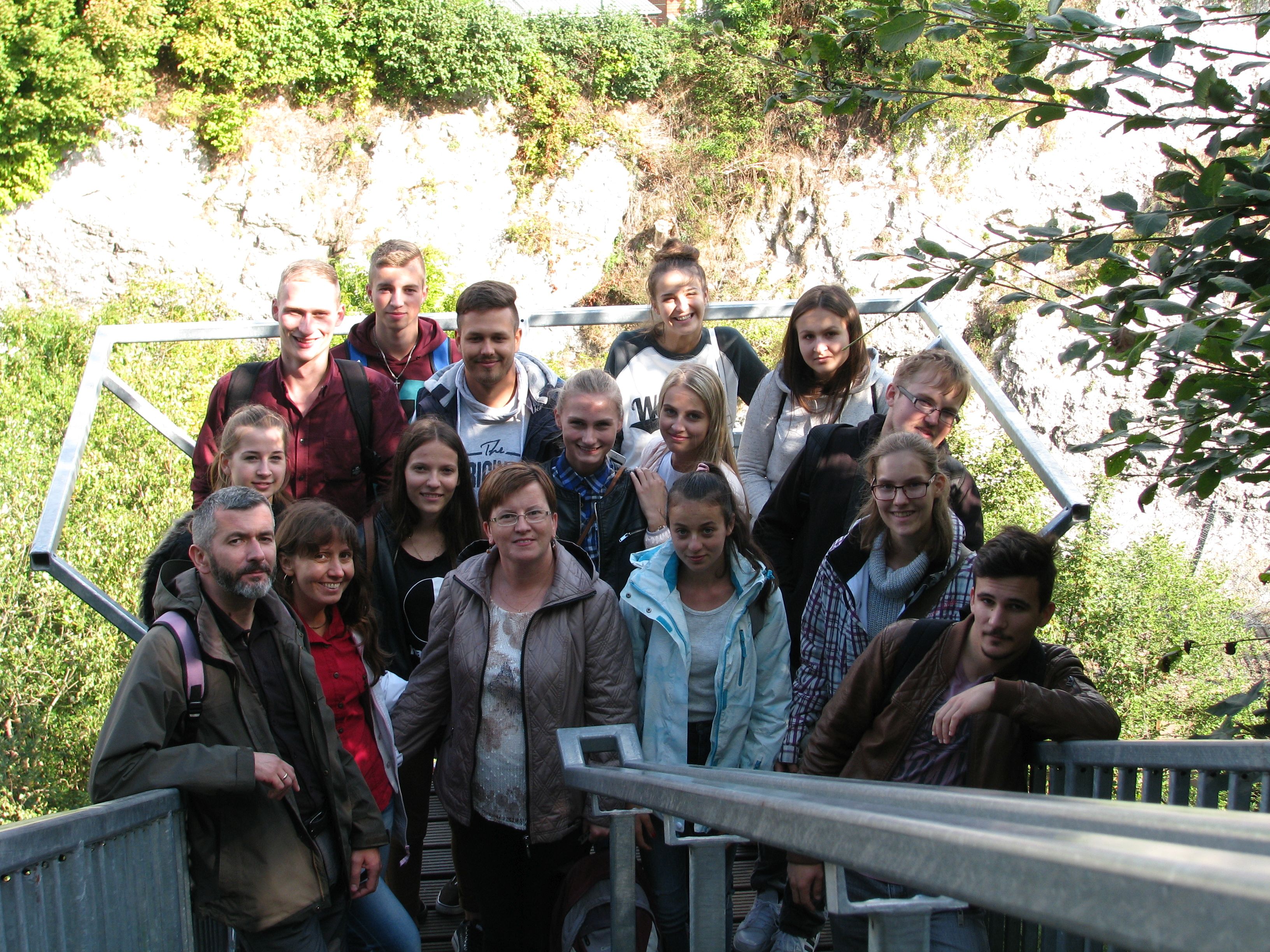 W dniach 20 -27.09.2016r. 10 uczniów ZSP wzięło udział w wymianie polsko - niemieckiej ze zaprzyjaźnioną szkołą w Bad Segeberg. W podróży do Niemiec towarzyszyło nam dwóch opiekunów: pani Sylwia Brach oraz pan Mirosław Śledź. W pierwszym dniu udaliśmy się na uroczyste powitanie do budynku szkoły. Pan Dyrektor - p. Heinz Sandbrink oraz nauczycielki: p. Birge Bracker i p. Aleksandra Urbaniak przywitali nas serdecznie i przedstawili organizację pracy szkoły. Musieliśmy się odnaleźć w nowym środowisku, co okazało się łatwe dzięki serdeczności, otwartości i gościnności naszych gospodarzy. Byliśmy pod wrażeniem nowoczesnych pracowni oraz warsztatów, w których uczniowie nabierają wiedzy i doświadczenia związanego z ich przyszłym zawodem. Kolejnym krokiem było zapoznanie się z zabytkami i historią miasta Bad Segeberg. Zwiedziliśmy m. in. jaskinie Kalkberghhle - miejsce, w którym mieszkają nietoperze. Jaskinia ta liczy ok. 4 mln lat. |