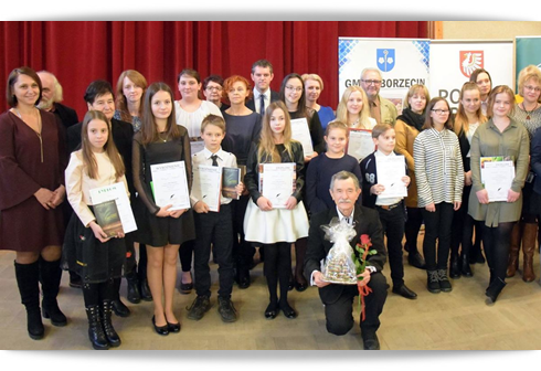 wręczył uczniom dyplomy uznania i upominki, prosząc jednocześnie