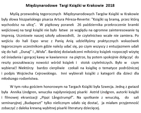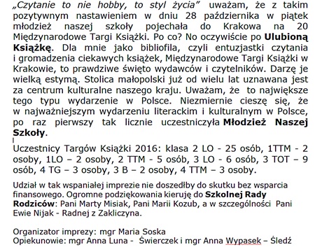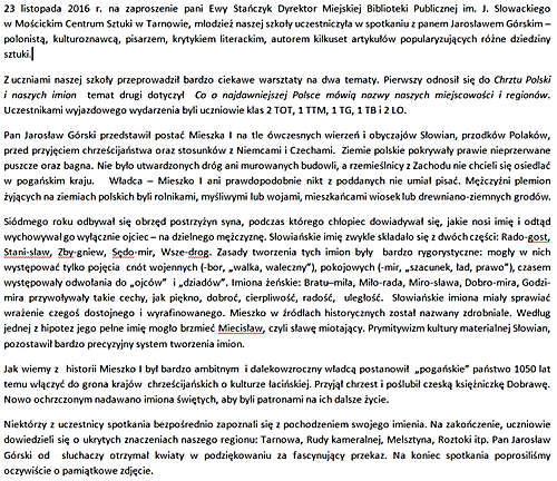 rzyszyły gimnazjalistom z pobytu w naszej szkole.
