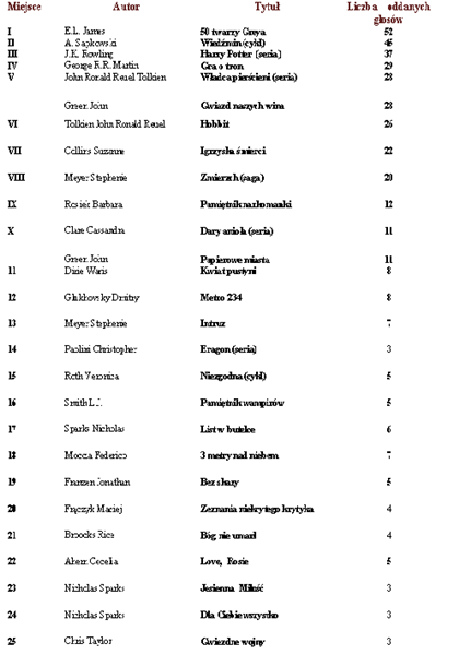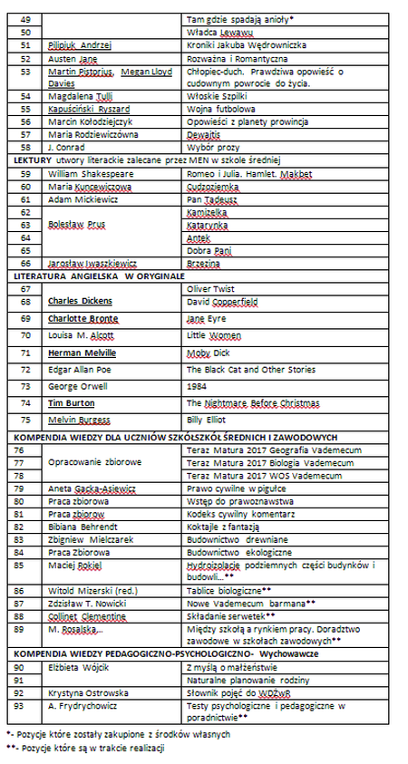 Witam, Poniżej zamieszczam na waszą prośbę listę zakupionych książek do biblioteki Życzę Miłej lektury