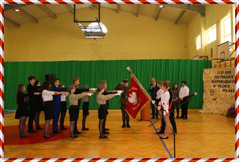 Uroczyste przekazanie sztandaru i ślubowanie pocztu odbyło się 9 listopada na uroczystej akademii w Święto Patrona Szkoły – Marszałka Józefa Piłsudskiego, w 100. rocznicę odzyskania przez Polskę niepodległości. |