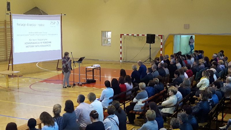 Problemy komunikacyjne między dziećmi i rodzicami pojawiają się w wielu rodzinach. Nasilają się szczególnie w trudnym okresie rozwoju młodego człowieka, gdy spada autorytet rodzica, a rośnie wpływ grupy rówieśniczej. Często prowadzą one do występowania zachowań aroganckich, pełnych buntu i agresji. Jak przetrwać w rodzinie ten trudny czas? Jaką postawę przyjąć aby nie stracić zaufania dziecka, ale równocześnie mieć wpływ na jego życie? Temu problemowi poświęcone było szkolenie prowadzone przez panią Barbarę Woszczynę, dyrektora Krakowskiego Ośrodka Terapii i Specjalistycznej Poradni Psychologiczno-Pedagogicznej na temat: „Komunikacja w rodzinie, metody wychowawcze”, które odbyło się w dniu 25.09.2017r. w Zespole Szkół Ponadgimnazjalnych w trakcie zebrania z rodzicami uczniów wszystkich klas. Szkolenie to jest jednym z działań w projekcie „Przemoc to niemoc” realizowanym przez Gminny Ośrodek Pomocy Społecznej w Zakliczynie w ramach Programu Osłonowego „Wspieranie jednostek Samorządu Terytorialnego w Tworzeniu Systemu Przeciwdziałania Przemocy w Rodzinie”.