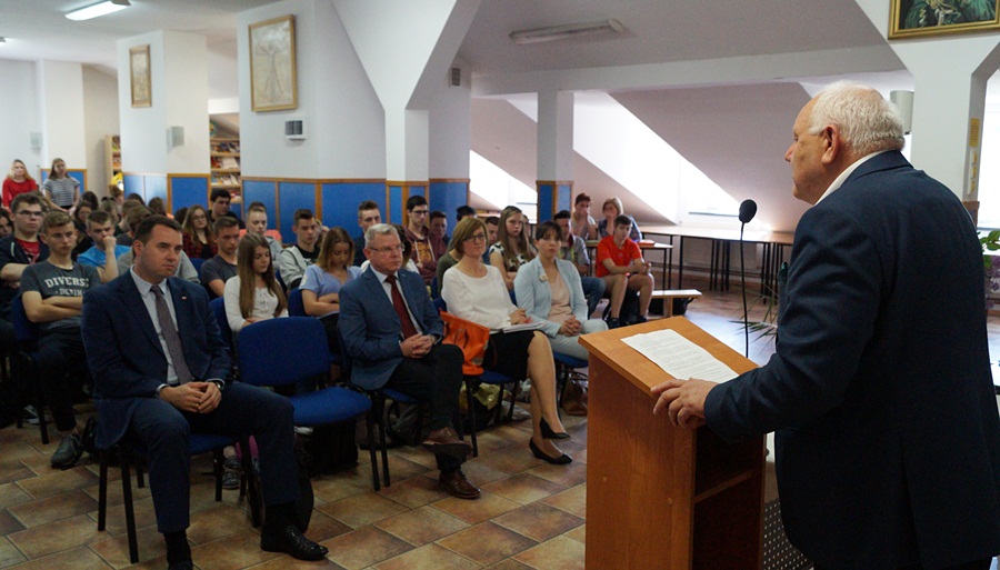 W piątek, 19 maja uczniowie naszej szkoły mieli okazję spotkać się w auli ZSP z wyjątkowymi gośćmi Michałem Wojtkiewiczem – zasłużonym wieloletnią pracą w naszym regionie posłem PiS-u oraz Dawidem Chrobakiem- Burmistrzem Gminy Zakliczyn. Obaj panowie zostali zaproszeni do szkoły przez polonistkę Barbarę Lasotę, która była organizatorką i pomysłodawczynią spotkania. Pomysł inicjowania spotkań młodzieży z politykami i samorządowcami, które uczyłyby ją zasad parlamentaryzmu i demokracji oraz kształtowały postawę obywatelską zrodził się wcześniej. Już w ubiegłym roku przybyli do naszej szkoły Edward Czesak europoseł reprezentujący nasz kraj w UE , Roman Łucarz Starosta Tarnowski oraz Dawid Chrobak Burmistrz Zakliczyna. Młodzież wykazała duże zainteresowanie w rozmowie z politykami i zadawała pytania. |