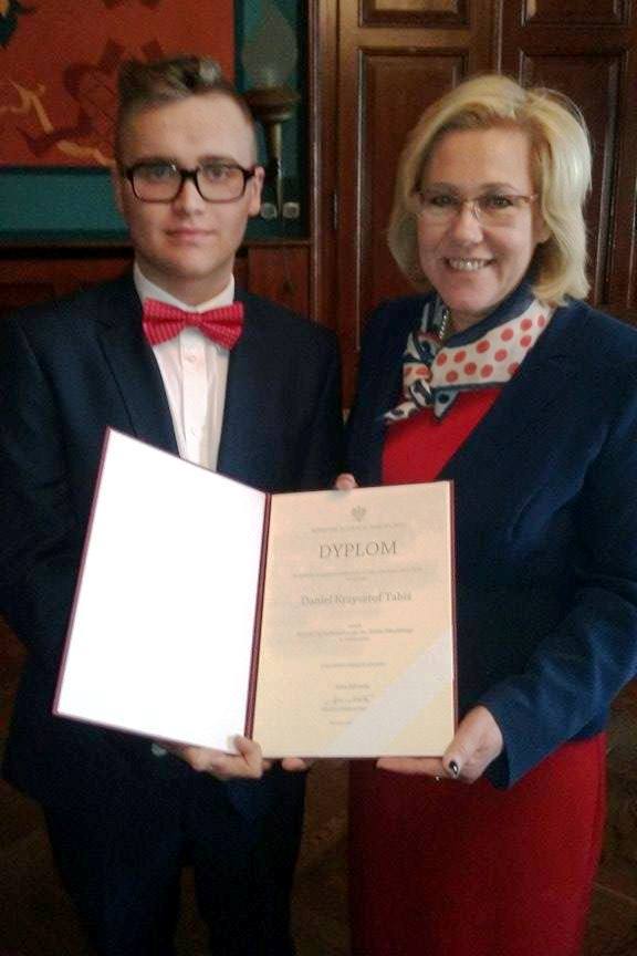 Z przyjemnością informujemy, że uczeń klasy trzeciej Liceum Ogólnokształcącego, Daniel Tabiś, w bieżącym roku szkolnym otrzymał Stypendium Ministra Edukacji Narodowej. Uroczyste wręczenie dyplomów odbyło się 29 marca w siedzibie Cechu Rzemiosł Spożywczych w Krakowie. Wyróżnienie przyznawane jest szczególnie uzdolnionym uczniom, uzyskującym wybitne osiągnięcia edukacyjne. Daniel znalazł się w elitarnym gronie 25 nagrodzonych z województwa małopolskiego.