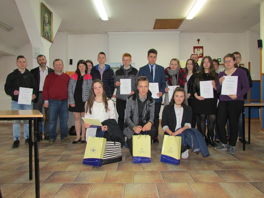 30 marca br. w Zespole Szkół Ponadgimnazjalnych w Zakliczynie odbył się finał II Powiatowego Konkursu Wiedzy o Żołnierzach Wyklętych. Konkurs został zorganizowany przez Samorządowe Centrum Edukacji w Tarnowie i Zespół Szkół Ponadgimnazjalnych im. Józefa Piłsudskiego w Zakliczynie. W zmaganiach konkursowych wzięli udział uczniowie z gimnazjów w Czermnej, Starych Żukowicach, Lubczy, Miechowicach Wielkich, Wojniczu i Zakliczynie. |