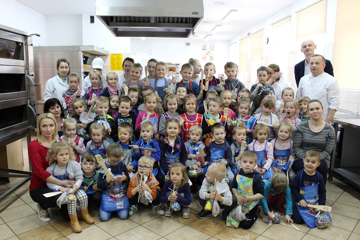 WARSZTATY CUKIERNICZE Z UDZIAŁEM PRZEDSZKOLAKÓW Z NIEPUBLICZNEGO PRZEDSZKOLA "WESOŁE MACZKI" Z OLSZYN ORAZ UCZNIÓW KLAS GASTRONOMICZNYCH Z ZSP ZAKLICZYN