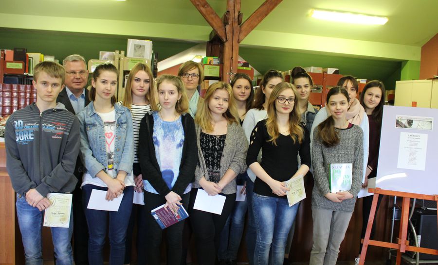 Z wielką satysfakcją informujemy, że uczniowie naszej szkoły osiągnęli bardo dobre wyniki w tegorocznej edycji Ogólnopolskiego Konkursu Polonistycznego „Fraszka”. Do konkursu przystąpiło 17 uczniów reprezentujących klasy Liceum Ogólnokształcącego i Technikum. Niewątpliwie wykazali się oni dużą wiedzą z zakresu literatury, teorii literatury oraz gramatyki języka polskiego. Najwyższe lokaty zajęli – Natalia Pawłowska z klasy I LO, Dominika Ojczyk z II LO, Katarzyna Matras z klasy I TG oraz Kacper Kluza z II LO. 23 lutego w szkolnej bibliotece zostały uroczyście wręczone dyplomy dla wszystkich uczestników konkursu, dla najlepszych czekały nagrody książkowe oraz dyplomy wyróżnienia.