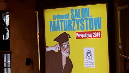 Już po raz dziesiąty w Auditorium Maximum Uniwersytetu Jagiellońskiego w Krakowie odbył się Krakowski Salon Maturzystów Perspektywy 2016. Maturzyści naszej szkoły zapoznali się z szeroką ofertą uczelni wyższych, w tym także zagranicznych . Ciekawe wykłady, w których uczestniczyli, dotyczyły procedur obowiązujących na egzaminach maturalnych (wykłady prowadzone przez przedstawicieli Okręgowej Komisji Egzaminacyjnej). Uczniowie mogli wziąć również udział w ćwiczeniach: Planowanie strategii firmy i kreacja w odpowiedzi na dane potrzeby. Wizyta na Salonie pomoże maturzystom nie tylko wybrać kierunek studiów i uczelnię, ale także odnaleźć się na rynku pracy. Życzymy Wam, abyście byli kreatorami przyszłości. Taki priorytet pomaga w podejmowaniu ważnych, życiowych decyzji. mgr Grażyna Żabińska