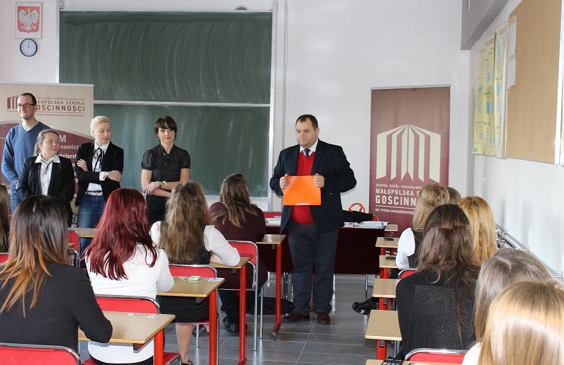 8 marca 2016 r. gościliśmy w naszej szkole panią Marię Brzeziak z Regionalnego Ośrodka Polityki Społecznej w Krakowie, która przeprowadziła zajęcia warsztatowe dotyczące przedsiębiorczości społecznej jako alternatywy dla klasycznych przedsiębiorstw. Program zajęć oprócz krótkiego wykładu obejmował rozgrywki z wykorzystaniem gry planszowej „Chłopska Szkoła Biznesu”. |