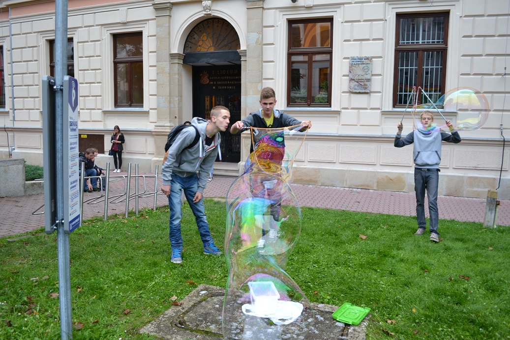 Dnia 26 września 2014 roku odbył się z naszej szkoły wyjazd na Małopolską Noc Naukowców do Tarnowa. Prawie 50-ciu naszych uczniów miało okazję podziwiać najróżniejsze pokazy i eksperymenty z dziedziny chemii, biologii, geografii, fizyki i matematyki w tarnowskich liceach oraz w Państwowej Wyższej Szkole Zawodowej (PWSZ) w Tarnowie. Uczniowie oraz studenci dali z siebie wszystko, abyśmy spędzili dobrze czas i nauczyli się czegoś nowego i trzeba przyznać, że udało im się to w stu procentach. |